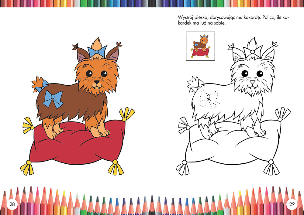 Do każdej malowanki dodany jest kolorowy wzór oraz naklejka. Format książeczki oraz proste ilustracje sprawiają, że Malowanki dla dziewczynek będą idealne już dla najmłodszych dzieci.