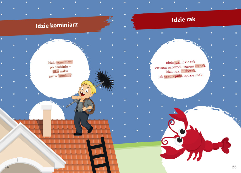 Rymowanki s± pe³ne humoru, nieraz rozbawiaj± absurdalno¶ci± tre¶ci, a przede wszystkim zapewniaj± niezapomnian± zabawê. Niektóre z nich mo¿na ¶piewaæ, inne recytowaæ, s³u¿± jako wyliczanki albo mo¿na zorganizowaæ konkurs, kto najszybciej nauczy siê ich na pamiêæ. Jedynym ograniczeniem jest wyobra¼nia!